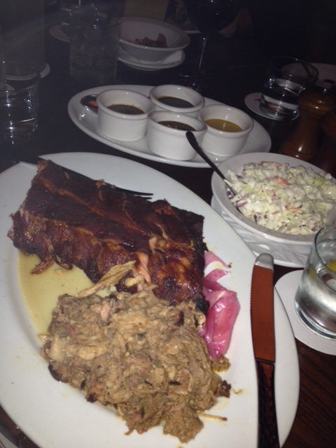 Who doesn’t like a platter of meat? Before I even get there, we need to check in on the pickles. I ate a bowl of their pickles. No, I didn’t mean that I shared a bowl. I mean I ate a bowl of pickles. Then, I ordered the Q2 with baby back ribs and pulled pork. Everything they do is dry rubbed and it’s amazing. Ahhhhhh-MAY-zing! It doesn’t even need the sauces, but all four of their standard sauces are gluten free and dairy free, according to our waiter. I didn’t have a whole lot of confidence in our waiter, but I had to try the Carolina sauce. And that Carolina sauce… I may need a moment before I can continue without drooling on my keyboard… It was a bit thicker than a traditional Carolina sauce, but it was packed with just the right amount of flavor to really complement the meat and rub. I couldn’t eat more than two ribs and about half of my pulled pork. I took the rest to go and had an amazing breakfast the next day.