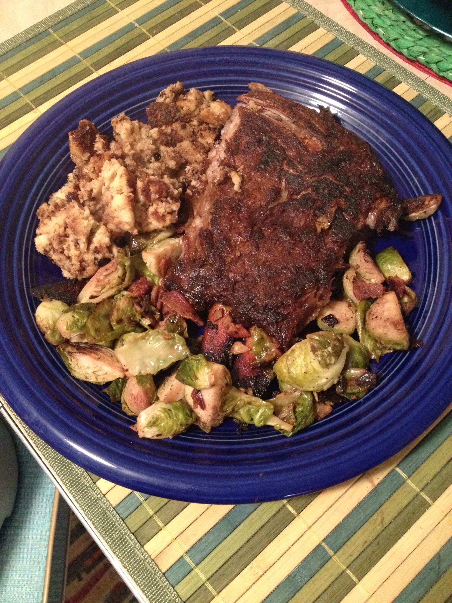 Meat. Apples. Yum. I have to make room in my freezer for my meat share (that I’m super excited to get), so I had to cook the biggest thing in there – a rack of ribs. I also still have a fridge full of apples, so I got inspired to make some Carolina goes New England ribs. I’m pretty smart like that.
