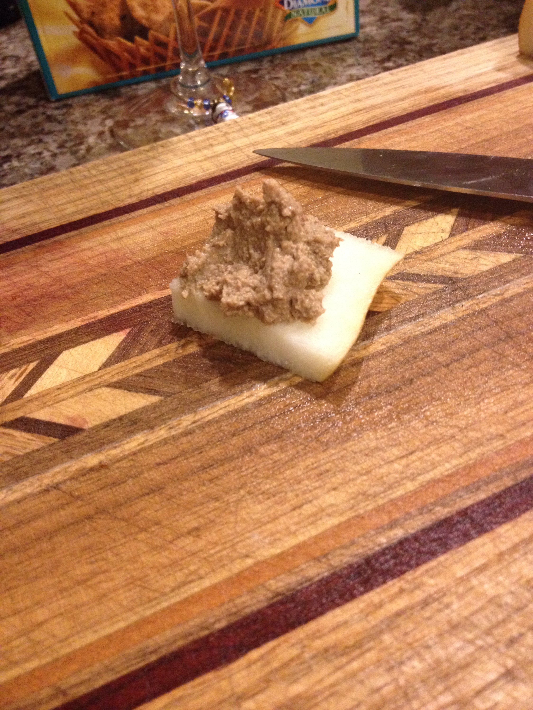 To serve, I like it on sliced pear with raisins and cornichons. I was able to find sulfite free cornichons at Whole Foods, but I wasn’t impressed with the selection, so I may make my own this summer.